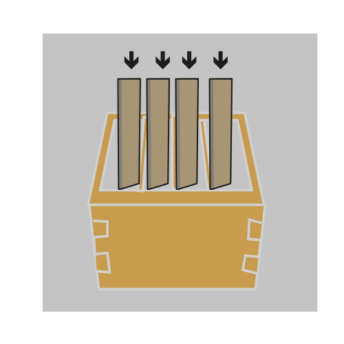 Insertar las tiras verticalmente en los marcos de la colmena.